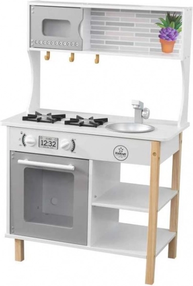 Die KidKraft Holz-Kinderküche ist eine großartige Wahl für kleine Köchinnen und Köche. Die robuste Konstruktion aus Holz und MDF, durchdachte Stauraumlösungen und realistische Elemente fördern Fantasie, Rollenspiel und Feinmotorik. Dank der kompakten Abmessungen passt sie ins Kinderzimmer oder Spielzimmer.