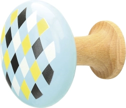 Bereichern Sie das Kinderzimmer mit originellen Wandhaken der französischen Marke Vilac. Dieses Set enthält zwei Haken: einen mit Eulenbild und den anderen mit lebhaften bunten Rhomben. Sie sind ideal zum Aufhängen von Mänteln, Taschen oder anderen Gegenständen, die griffbereit sein müssen.