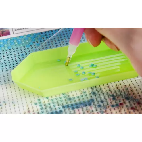 Set-Inhalt: Farbige Diamanten, Applikator, trockener Kleber, Behälter