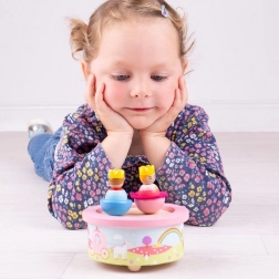 Diese wunderschöne Holz-Spieluhr ist mit zwei Figuren ausgestattet, die sich im Rhythmus des Schlafliedes drehen und schaukeln. Die Figuren sind mit unsichtbaren Magneten befestigt, was ein einfaches Abnehmen und separates Spielen ermöglicht.