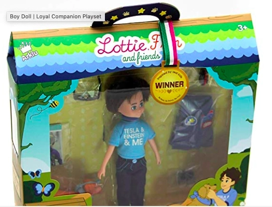 Lottie Finn ist eine moderne Puppe, die Kinder zu Freundlichkeit, Mut und der Erkundung des Weltraums inspiriert. Dank weichem, phthalatfreiem Vinyl fühlt sie sich angenehm an, und die stabile Konstruktion ermöglicht selbstständiges Stehen und realistische Posen. Das stylische T-Shirt „TESLA & EINSTEIN & ME“, Jeans und blaue Sneaker werden vom treuen Begleiter – dem Hund Cookie – ergänzt.