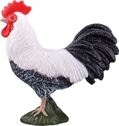 Detailgetreu geformtes Gefieder, kontrastreiche Schwarz-Weiß-Färbung und roter Kamm für ein authentisches Erscheinungsbild des Hahns.
