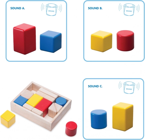 Dieses kompakte und präzise verarbeitete Konstruktionsset kombiniert 6 farbige Rasselsteine und 7 naturbelassene Steine. Kinder können die Teile nach Intensität und Charakter des Geräuschs vergleichen und zuordnen, ihre Feinmotorik sowie ihr logisches Denken trainieren. Die Box dient als cleverer Organizer und zugleich als Herausforderung – die Steine wieder zurückzulegen erfordert Einfallsreichtum und räumliche Vorstellungskraft.