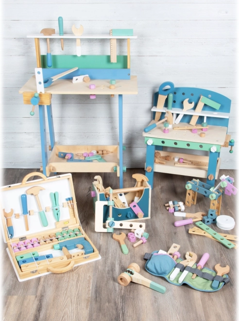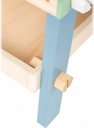 Entdecken Sie den Zauber des nordischen Stils mit einer Werkbank, die zarte Pastellfarben, Naturholz und durchdachte Funktionalität verbindet. Beim Spielen erlernen Kinder manuelle Geschicklichkeit, entwickeln Feinmotorik und Geduld. Dank der kompakten Maße passt die Werkbank in jedes Interieur.