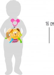 Die praktische Schlaufe ermöglicht das schnelle Befestigen am Kinderwagen, Autositz oder Spielbogen. Die weiche Plüsch-Ausführung ist sanft zur empfindlichen Haut und die Größe ist ideal für kleine Hände.