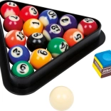 Set beinhaltet: 2 Queues, Billiardkugeln, ein Dreieck und Kreide.