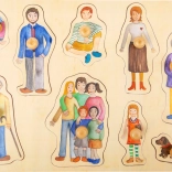 • 9 Einlegeteile: Mama, Papa, Baby, Brüderchen, Schwesterchen, Oma, Opa, Hündchen und Freunde