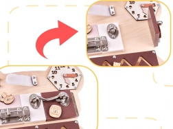 - Enthält Elemente wie Kugelscharen und Schlösser zum Öffnen, die die motorischen Fähigkeiten schulen.