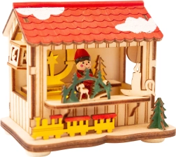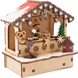 Die thematischen Motive eines Gewürzstands und eines Lebkuchenstands werden durch einen glitzernden „Schnee“-Effekt ergänzt, der die festliche Dekoration unterstreicht. Dank der kompakten Maße lässt sich die Dekoration leicht mit weiteren Figuren und einer Winterlandschaft kombinieren.