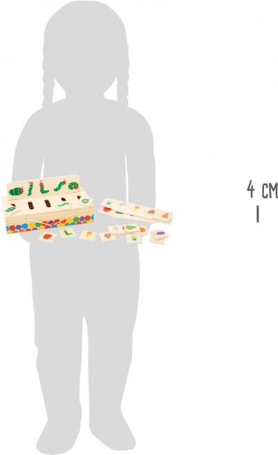Entdecken Sie die clevere hölzerne Sortierbox, inspiriert von der Geschichte Die kleine Raupe Nimmersatt, die Kindern hilft, Formen und Farben zu erkennen, logisches Denken und Feinmotorik zu trainieren. Die praktische Box mit Deckel und 19 Teilen ist auch ideal für unterwegs – der Verschluss mit Gummiband und Holzknopf hält alles zusammen.