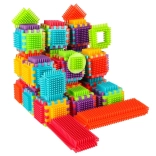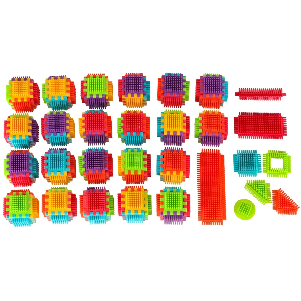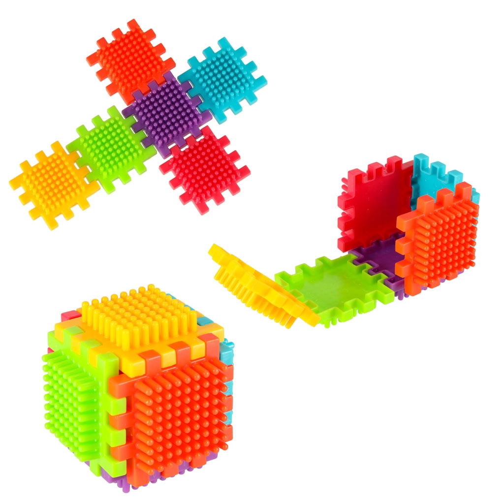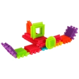 Die Blöcke bestehen aus hochwertigem Kunststoff, sind sehr leicht, flexibel und zugleich äußerst robust. Sie unterstützen beim Erlernen neuer Formen und Farben und fördern die manuellen Fähigkeiten. Die Blöcke sind so konzipiert, dass sie die sich entwickelnden Sinne des Kindes stimulieren: das Sehen durch kräftige Farben und den Tastsinn durch die originelle Form und Verbindungsart. Blöcke, die fantastische Möglichkeiten für kreatives Spielen bieten! Neben der traditionellen Kombinationsmöglichkeit wie bei gewöhnlichen Bausteinen können diese Blöcke auch vollflächig an den Seiten verbunden werden, was eine zusätzliche Gestaltungsoption eröffnet. Sie können zum Bau von Gebäuden, Robotern und anderen Konstruktionen verwendet werden!