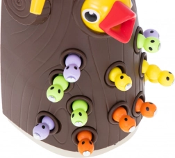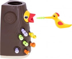 Testen Sie Ihre Genauigkeit mithilfe des magnetischen Schnabels, der dabei hilft, die bunten Würmer aus dem Baum zu fangen.