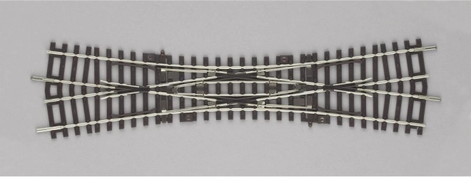 Diese Weiche kombiniert Paare von geraden Gleisen im Winkel von 15°, was ermöglicht, komplexere Strecken im Maßstab H0 zu erstellen. Manuelle Bedienung bietet Flexibilität mit der Möglichkeit der Fernsteuerung dank der vorbereiteten Verbindung für den Weichenantrieb.