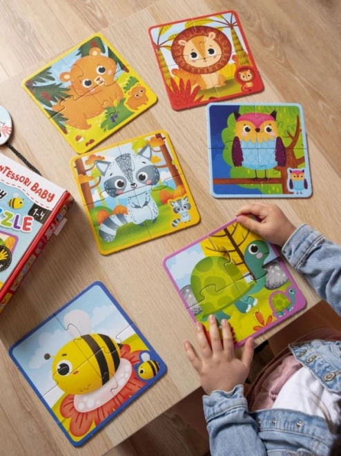 Das Set Montessori Tastpuzzle-Spiel enthält 24 Teile, aus denen sich 6 verschiedene Tierbilder zusammensetzen lassen. Jedes Tier hat eine spezielle raue Oberfläche, die Kindern hilft, ihre taktile Wahrnehmung und Beobachtungsfähigkeiten zu entwickeln. Diese Puzzlespiele sind so konzipiert, dass sie alle Sinne der Kinder einbeziehen und ihre natürliche Entwicklung fördern.
