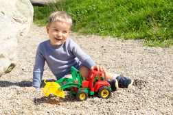 Heben, laden und transportieren – ganz wie auf der Baustelle. Die mechanisch bedienbare Schaufel ist leicht zu handhaben und beschäftigt Kinder stundenlang.