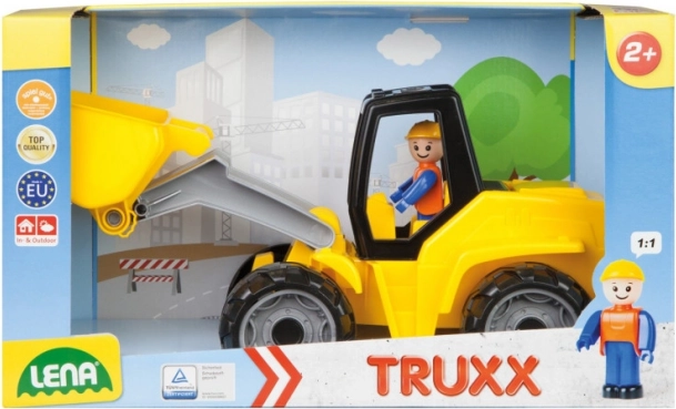 Dieser Kinder Baustellenlader mit einer Länge von 44 cm ist aus elastischem, hochwertigem Kunststoff gefertigt, der den europäischen Normen entspricht. Er wurde entwickelt, damit Kinder realistische Szenarien beim Spielen erleben und ihre motorischen Fähigkeiten stärken können. Der Lader enthält eine Fahrerfigur und bietet dank der Hebekabine und der drehbaren Schaufel vielfältige Bewegungsmöglichkeiten.