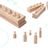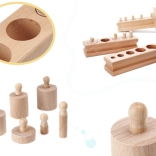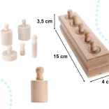Das Holzspielzeug in Übereinstimmung mit der Montessori-Philosophie unterstützt die umfassende Entwicklung des Kindes und stimuliert die Kreativität. Zylinder können nicht nur als Spielzeug, sondern auch als kleine Gewichte beim Kinderspiel im Kaufmannsladen dienen.