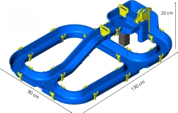 Dichte Verbindungen ohne Kleben, stabiler Kunststoff und drei mögliche Streckenkonfigurationen. Bauen, umbauen und überall draußen spielen.