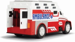 Realistisches Spielzeug für kleine Retter: ein freilaufender Krankenwagen aus Kunststoff mit 15 cm Länge, Licht- und Soundeffekten und öffnenden Hecktüren. Ideal für kreatives Spielen ab 3 Jahren.