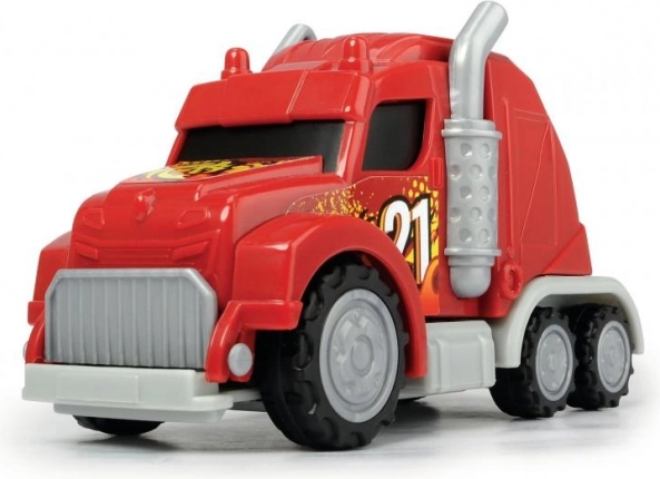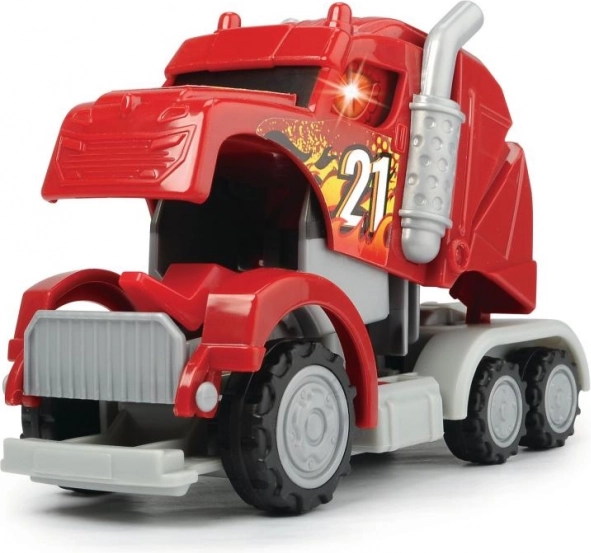 Das Fahrerhaus der Zugmaschine verwandelt sich im Handumdrehen in einen Drachen. Rückzugantrieb, mit Soundeffekt und blinkendem Licht. 3 Varianten – rot, blau oder grün. Größe: 12,5 cm.