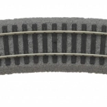 Gebogenes Gleis von PIKO mit detailgetreuer Nachbildung von Holzschwellen auf Schotterbett. Ideal für Modellbauer, die eine originalgetreue Verarbeitung und hohe Qualität suchen.