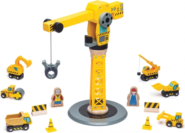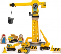 Dieses hochwertige Holz-Bauset mit drehbarem Kran und magnetischem Haken bietet Kindern endlose Spielmöglichkeiten. Dank robuster Verarbeitung und sicheren Materialien ist es ideal für den Alltag und die Förderung von Fähigkeiten. Das leuchtend gelbe Design der Baufahrzeuge begeistert Kinder sofort.