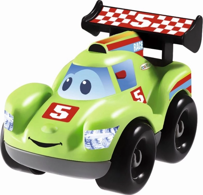 Drei Modelle von Rennwagen mit austauschbarer Karosserie. Jedes Rennwagenmodell mit einem lustigen Gesicht hat keine scharfen Kanten und liegt gut in der Hand. Ideal für kleine Kinderhände. Produktabmessungen (L×B×H): 10 × 6,5 × 6,5 cm.