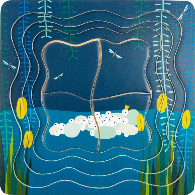 Jede Schicht veranschaulicht eine andere Phase – vom Ei über die Kaulquappe bis hin zum Froschkönig. Kinder festigen spielerisch ihr Wissen über die Natur und üben gleichzeitig das Puzzeln nach Formen und Bildern.