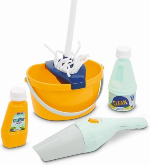 Der Wagen enthält alle notwendigen Werkzeuge zum Spielen beim Reinigen, einschließlich Besen, Mopp und Handstaubsauger.