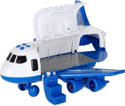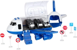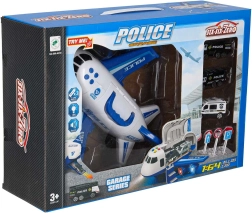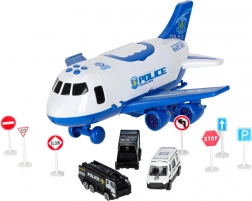 Im Inneren des Flugzeugs verstauen Sie 3 Polizeifahrzeuge und ein Set aus 7 Schildern, die Kindern helfen, Verkehrsregeln und die Arbeit der Einsatzkräfte zu verstehen. Das Flugzeug hat einen praktischen Tragegriff, abnehmbare Flügel zum Platzsparen und leichtlaufende Räder für actionreiche Landungen.