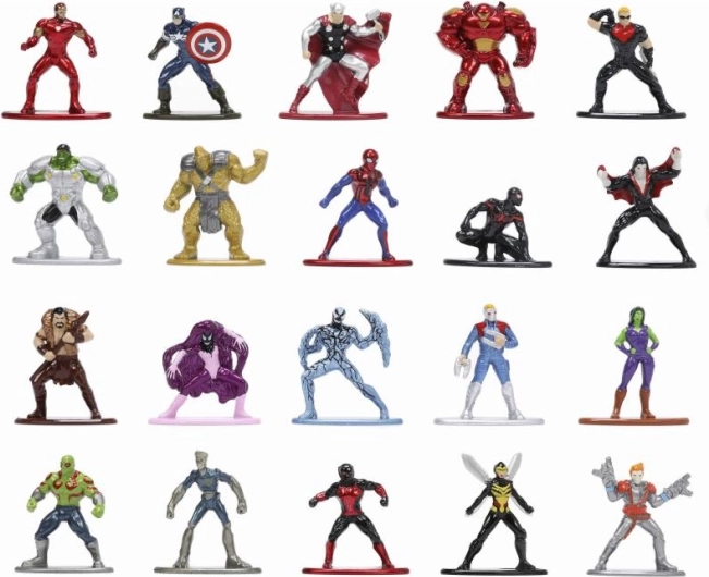 Das widerstandsfähige Metallgehäuse wird durch eine präzise Lackierung ergänzt, die Farben, Kostüme und ikonische Elemente der Superhelden betont.