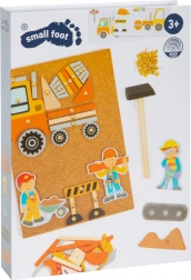 Dieses kreative Klopfset auf einer Korkplatte ist eine hervorragende Wahl für kleine Baumeister und Verkehrs-Fans. Kinder können aus Holzformen Arbeiter, Betonmischer, Kran oder Autos gestalten und sie mithilfe der Reißnägel sicher an der Korktafel befestigen. Die praktische Aufbewahrungsbox sorgt dafür, dass kein Teil verloren geht.