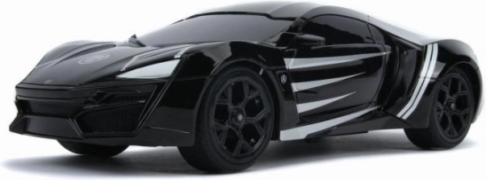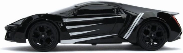 Genießen Sie actiongeladenes Fahren mit dem RC-Auto Lykan HyperSport im Black Panther-Design. Die schwarze Sportoptik mit silbernen Details und MARVEL-Logos fällt sofort ins Auge, während die stabile Steuerung auf 2,4 GHz geschmeidige Manöver ohne Störungen gewährleistet.