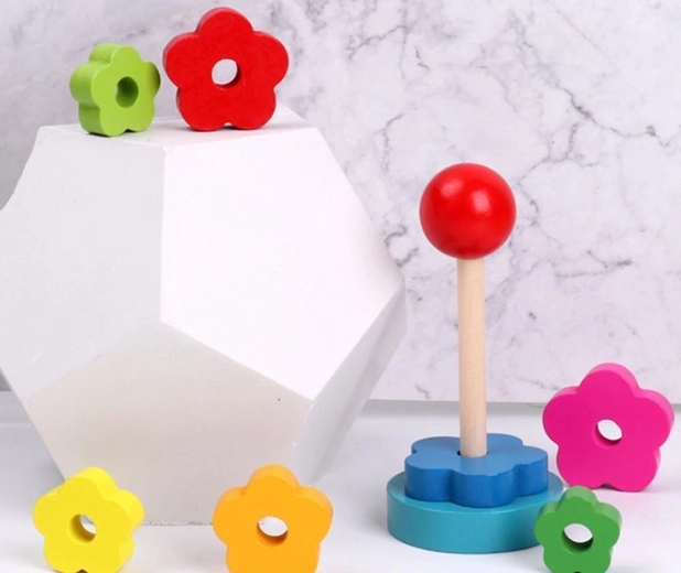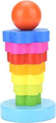 Beschäftigen Sie die Kinder für längere Zeit mit einem klassischen Holzspielzeug. Der Stapelspiel-Ring ist ein klassisches Spiel für Kleinkinder. Es hilft ihnen, die feinmotorische Entwicklung, die Logik und die Geduld zu verbessern. Die Stapel-Sets können auch zum Erlernen von Farben oder Formen verwendet werden. Das Spiel besteht darin, einen Turm aus Ringen zu bauen, von dem größten bis zum kleinsten Ring.