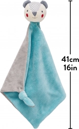 Extra weiche, plüschige Decke mit dem Kopf eines lächelnden Bären. Perfektes Accessoire für den Nachmittagsschlaf. Kontrastreiche Muster und Farben des Bären fördern die sensorische Entwicklung von Kindern, während der Knoten an der Ecke der Decke gehalten oder gekaut werden kann.