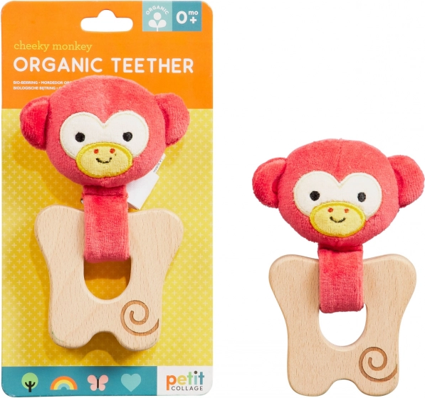Petit Collage Beißring Äffchen aus Bio-Baumwolle und Holz