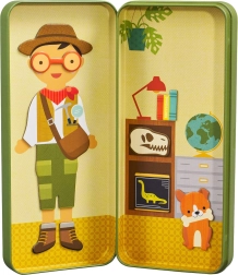 Das Set enthält: Ein Bild eines jungen Archäologen mit magnetischen Accessoires.
