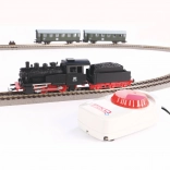 • Komplettpaket – Lokomotive BR 98 mit Tender, 2 × Personenwagen, Gleise, Stromversorgung und Regler.