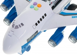 Dank des geräumigen Innenraums kann das Flugzeug bis zu 6 Polizeiautos transportieren. Integrierte LED-Leuchten an den Motoren erhöhen die Attraktivität des Spiels.
