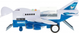 Das Flugzeug ist mit einer verschiebbaren Rampe für einfachen Zugang der Autos an Bord und hinaus ausgestattet. Das Öffnen des oberen Teils des Flugzeugs erweitert die Spielmöglichkeiten.