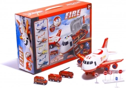 Flugzeug – Transporter mit Baufahrzeugen, Lichtern und Geräuschen