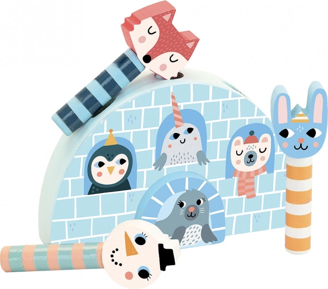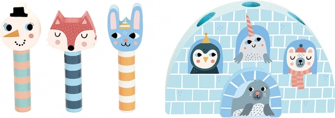 Wir präsentieren ein hölzernes Abschuss-Spiel mit zauberhaften Tieren aus Island. Kinder haben viel Spaß mit drei Figuren – Fuchs, Hase und Schneemann –, die aus einem Iglu herausspringen. Das Spiel ist nicht nur unterhaltsam, sondern fördert auch die Entwicklung der Feinmotorik und die Kreativität der Kinder.