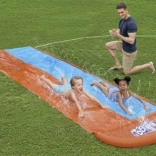 Diese lange Garten-Wasserrutsche bietet zwei parallele Fahrspuren für spannende Wettkämpfe von Kindern und Erwachsenen. Seitliche Kaskaden von Wasserdüsen halten die Oberfläche stets nass, sodass die Fahrt auch an heißesten Tagen schnell, sanft und erfrischend ist.