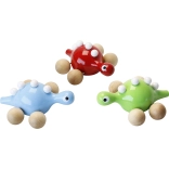 Genießen Sie den Spaß mit dem hölzernen Dinosaurier auf Rädern von der Marke Vilac. Dieser niedliche Dinosaurier ist grün gestrichen und mit weißen Erhebungen auf dem Rücken verziert. Dank der Holzräder kann Ihr kleiner Entdecker den Dinosaurier leicht im Haus oder draußen fahren.