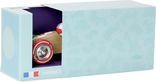 Die Premium-Ausführung aus lackiertem Holz der Marke VILAC überzeugt durch Robustheit und eine sichere Verarbeitung ohne scharfe Kanten. Das ideale Geschenk für kleine Rennfahrer ab 18 Monaten, das aktives Spielen und Fantasie anregt.