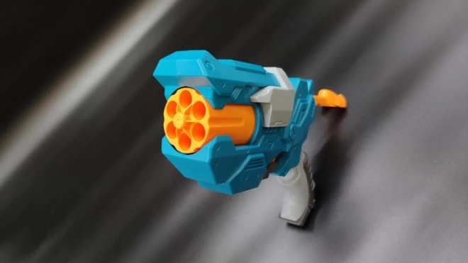 Eine unterhaltsame und sichere Pistole für Schaumstoffmunition für actionreiche Spiele zu Hause und im Freien. Im Set finden Sie eine Pistole, 3 Plastikdosen als Zielscheiben und 6 Schaumstoffprojektile. Ideal für Zieltraining und Spaß für Kinder ab 8 Jahren.