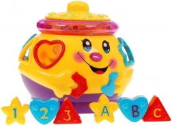 Erleichtert das Erlernen von Formen und Farben durch das Einfügen von 6 verschiedenen Formensteinen in die passenden Öffnungen.