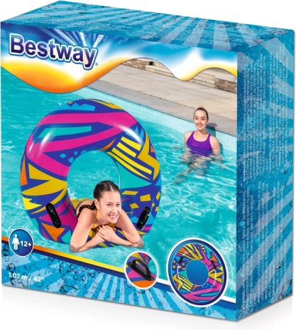 Der Bestway Geometric Schwimmring ist die perfekte Wahl für entspannte Stunden am Meer, am See oder im heimischen Pool. Dank des großen Durchmessers von 107 cm ist er für Nutzer ab 12 Jahren und Erwachsene geeignet. Langlebige Materialien, Sicherheitsventile und stabile Griffe sorgen für eine komfortable und sichere Fahrt über die Wellen.