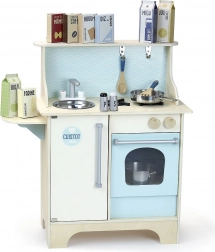 Die stilvolle Kinderküche in Blau begeistert kleine Köche und Köchinnen. Sie bietet eine stabile Holzkonstruktion, klickende Herdknöpfe, Spüle und Backofen sowie reichhaltiges Zubehör für realitätsnahes Spiel. Geeignet ab 3 Jahren.