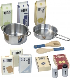 Dank der robusten Holzkonstruktion ist die Küche stabil und langlebig. Enthalten sind Kochmütze und Schürze des Chefkochs, Salz- und Pfefferstreuer, Kochlöffel, Topf, Pfanne und Lebensmittel in Tetrapacks – alles bereit für fantasievolles Kochen. Nach dem Auspacken ist eine einfache Montage erforderlich.